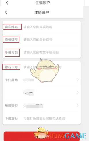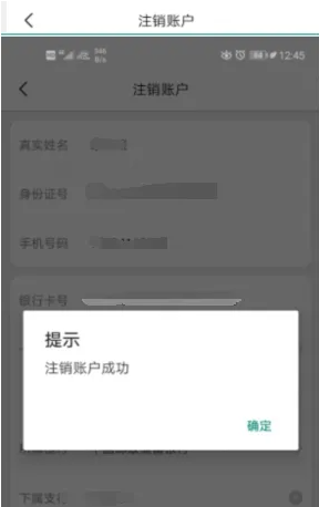 5、输入个人信息和退款银行卡号,完成后点击“注销账户”。